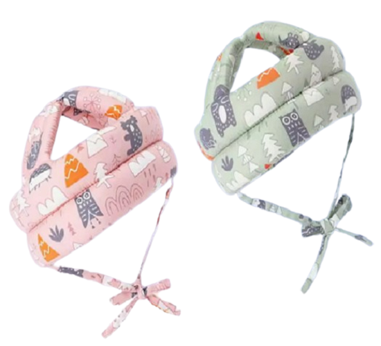 Fabricado en algodón y poliéster, este gorro es suave, cómodo y ajustable para adaptarse perfectamente a su cabecita. Disponible en colores rosa y verde claro, es la solución ideal para proteger la cabeza de tu bebé de las caídas mientras explora el mundo.